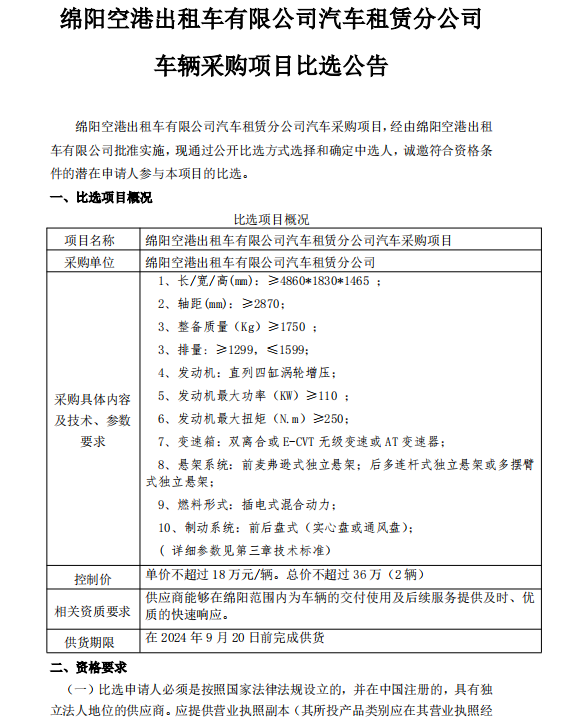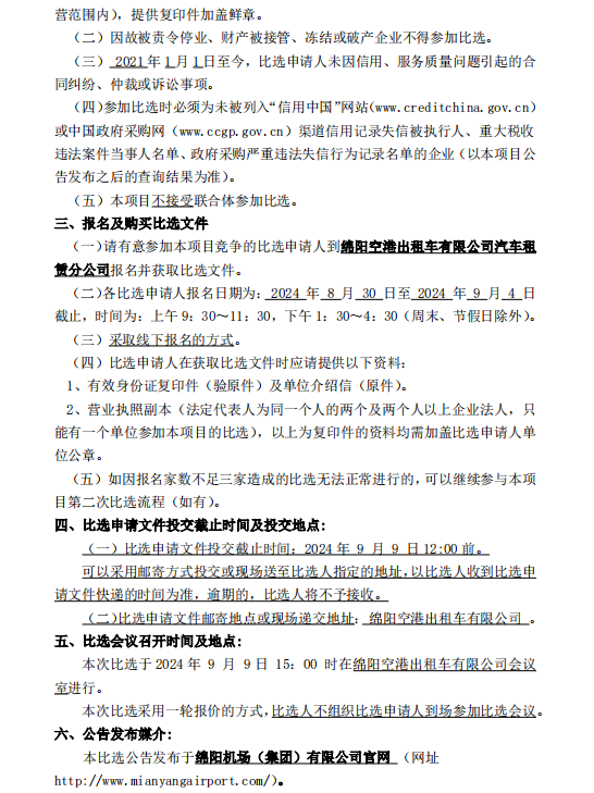 綿陽(yáng)空港出租車有限公司汽車租賃分公司車輛采購(gòu)項(xiàng)目比選公告